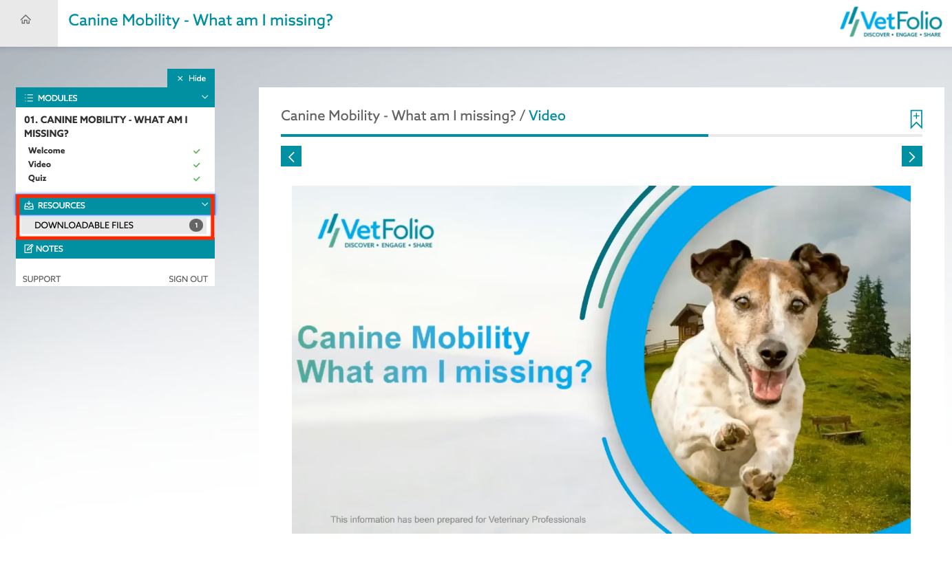 Some courses include a downloaded resources or files within the menu of the course. This is where you can access and download any documents made available by the course author. The course menu is found to the left of the course in a desktop view, or just above the course in a smaller mobile view.