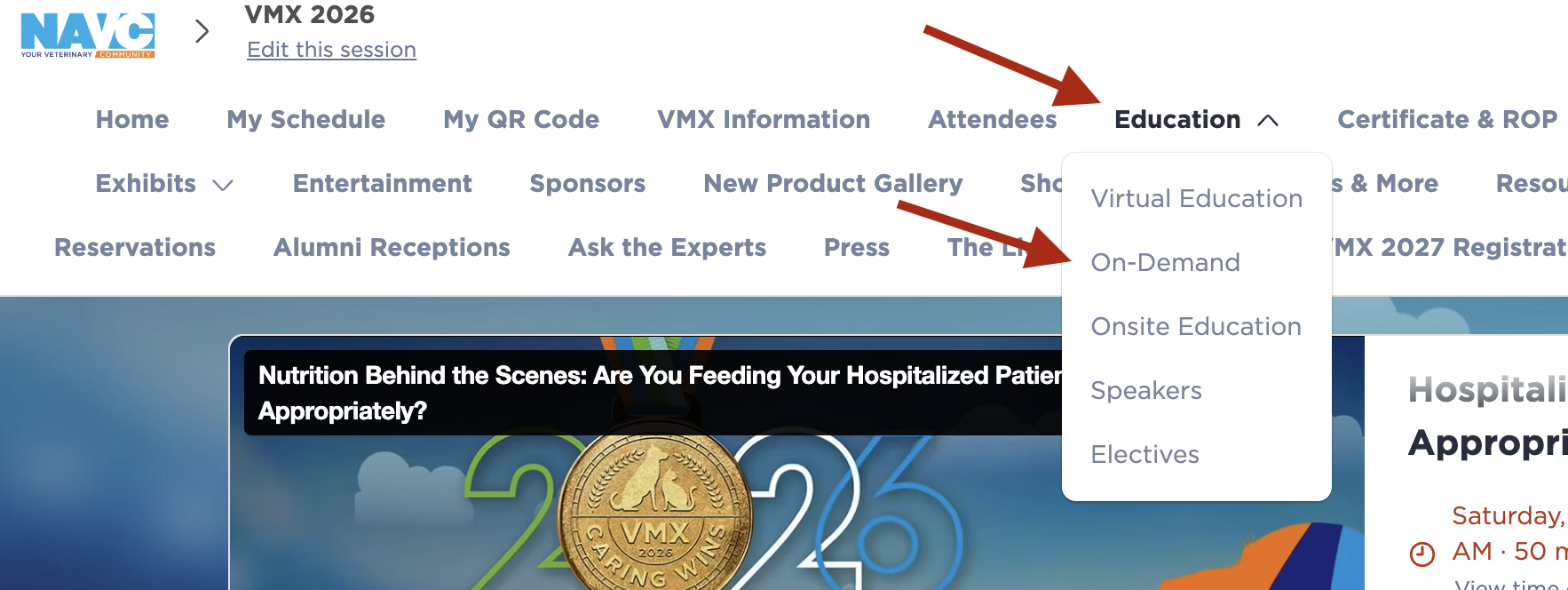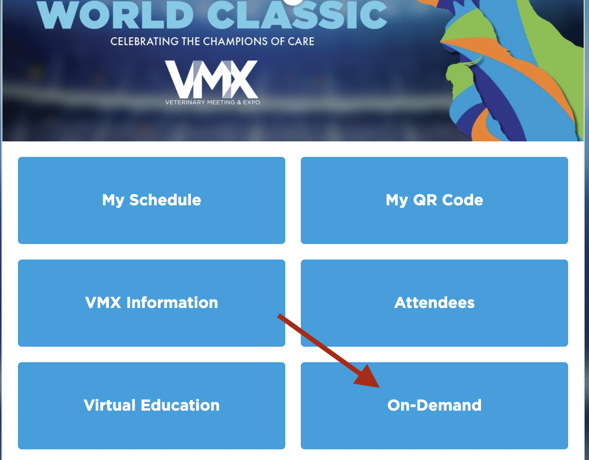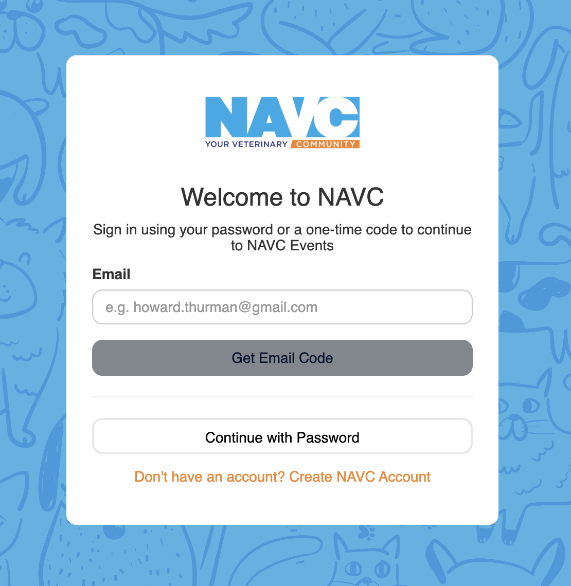 To access the VMX OnDemand sessions, you will either access the NAVC Events App or visit connect.navc.com. Log in with the email you registered for VMX. You can either use your password or request a code to be sent to your email.